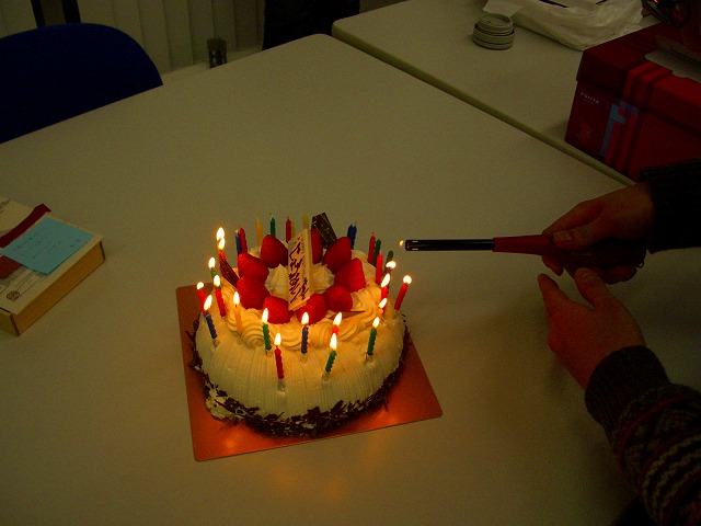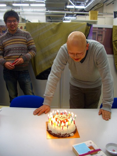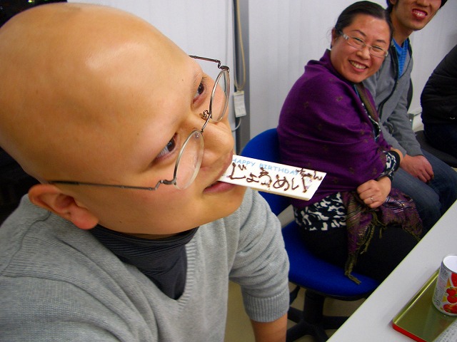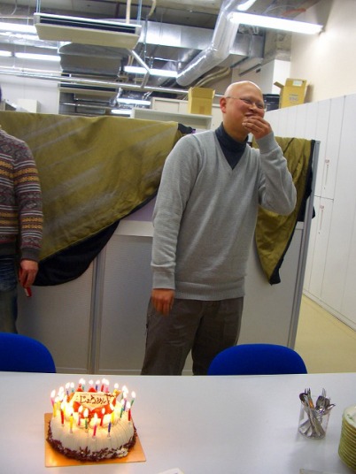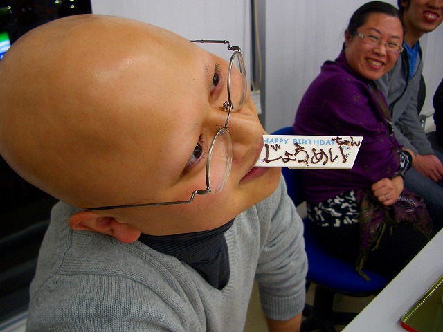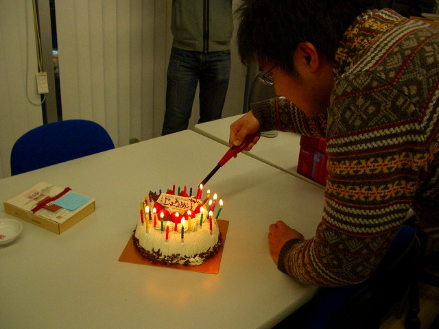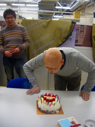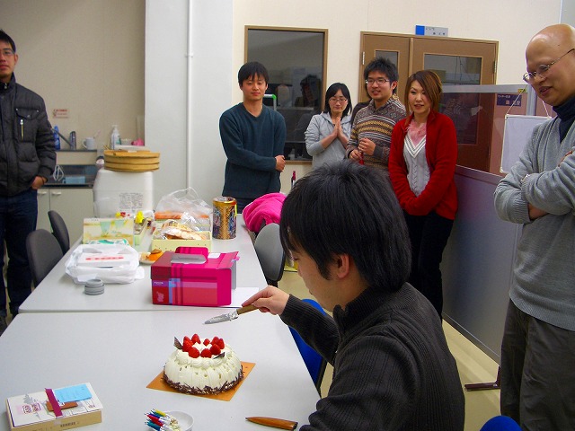 2010年12月、長年、研究室に貢献、居座ってきた加藤君も今年度で修了。 同じく、研究室に多大な貢献をしてくれた技術補佐員の樋口さんと 合同誕生日パーティーです。 藤先生も、白井もいない日を見計らってのパーティー。 忘れませんからね、加藤君。おめでとう。