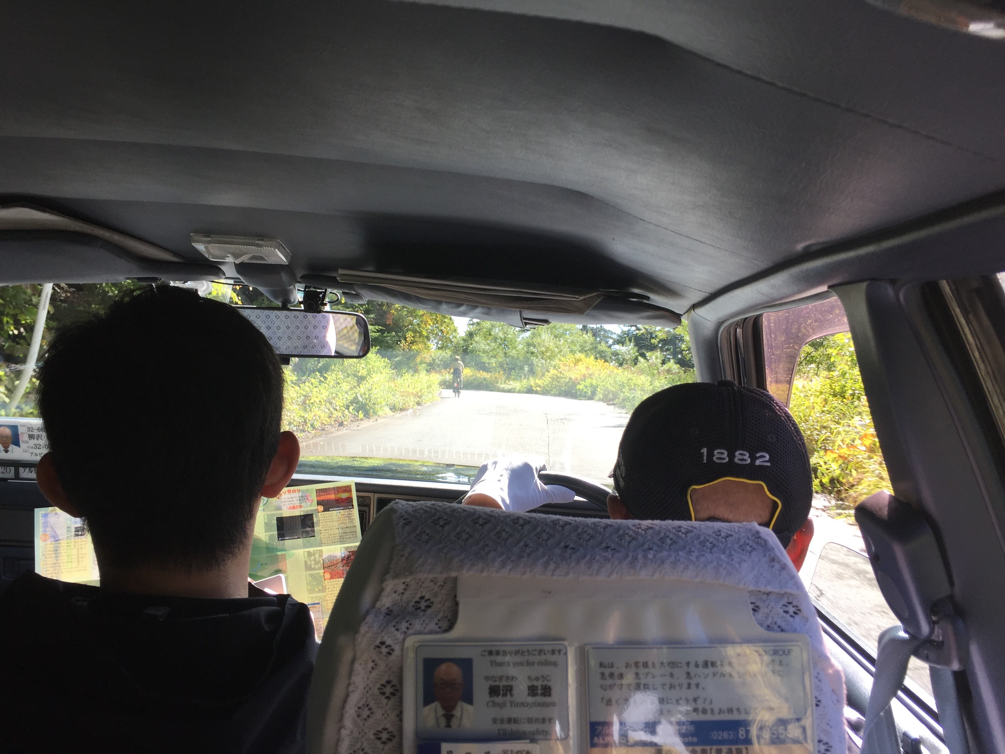バスの料金は一人往復 2,500 円ですが,タクシーでも同じ料金とのことだったので,タクシーを利用しました。